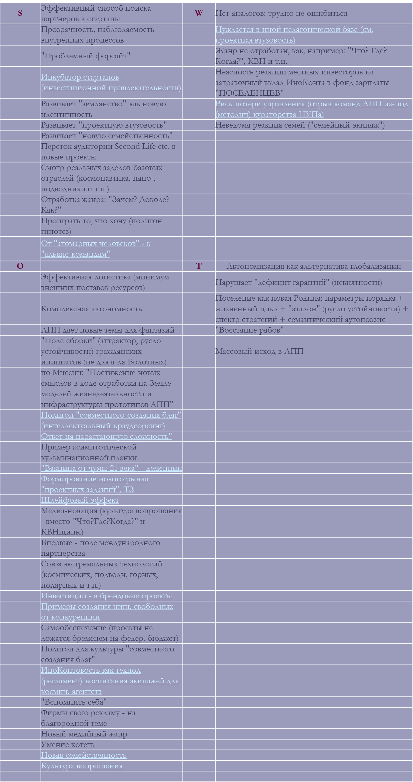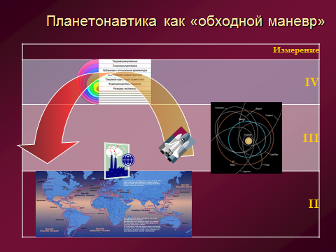 Программа способствует расширению возможностей «обретения Россией статуса мировой державы на принципиально новой основе», «подъема России на новую, более высокую ступень развития цивилизации». В качестве нетривиальной стратегии предлагается открытие новой сферы – планетонавтики, - с отработкой на Земле и последующим развертыванием на новых планетах и иных объектах Солнечной системы человеческой жизнедеятельности. Тем самым, будет заложен механизм гарантий занятости по любым профессиям и партнерства, небывалого рывка в технологическом прогрессе и в развитии производительных сил, самоорганизации демографических и многих системно связанных процессов. Важно, что такой своевременной и адекватной инициативой именно Россия закрепит за собой приоритет новых смыслов существования последующих поколений, глобальной гуманитарно-технологической стратегии, способной обновить курс международных отношений и экономической деятельности (за рамками ресурсной конкуренции) …