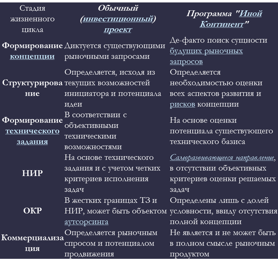 [15] «Экспансия информационных и телекоммуникационных рынков является одной из самых острых международных проблем и таит в себе множество угроз для национальной безопасности (НБ). Здесь у РФ имеется уникальный технологический опыт по созданию глобальных систем и сетей связи, телерадиовещания и управления на основе спутниковых систем связи. Естественное лидерство РФ в этом направлении основано не только на многолетнем технологическом опыте, но и на самом большом в мире ресурсе электромагнитного спектра, ценность которого будет только возрастать во времени. Это направление позволяет нашей стране в ближайшие годы стать бесспорным мировым лидером в сфере экспорта культурно-гуманитарных ценностей, пропаганде культурного наследия России. Постановка подобных работ позволит нашей стране сообщить реальный инновационный импульс, достаточный для модернизации высокотехнологических отраслей промышленности, вернуть ей достойное место в списке стран, формирующих принципы и цели мирового развития, которое она законно занимала на протяжении веков.: Правильная постановка этих задач может существенно изменить мировые инвестиционные процессы в пользу РФ, совместить решение этих задач с укреплением и обеспечением НБ на стратегическом и тактическом уровнях планирования.
