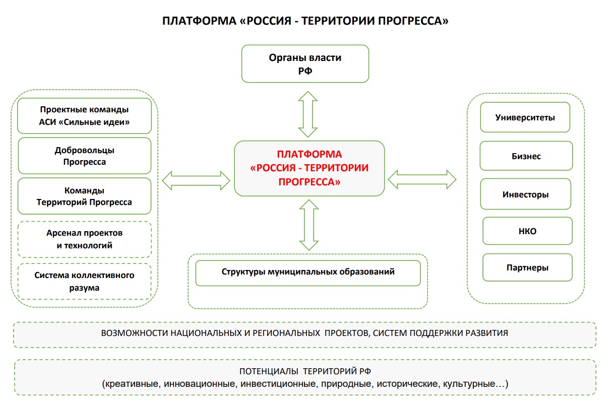 Такие центры со временем объединятся в корпорацию «Вершина России», которая обеспечит масштабирование и внедрение инноваций в масштабе России и за ее пределами. Такая корпорация станет «космодромом» для запуска Малых и Больших мировых проектов из России на весь мир.